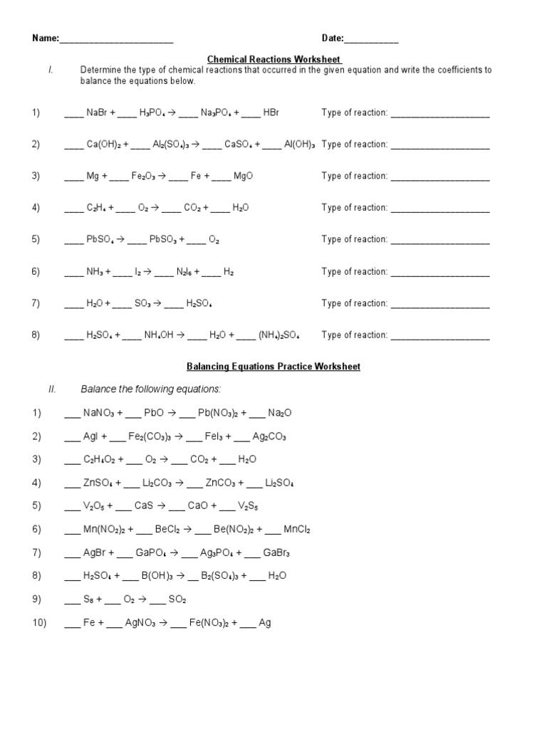 Balancing chemical equation with substitution. The printable worksheets are provided in pdf format with separate answer keys. 2h 2 o 2 → 2h 2 o + o 2 6. This is the currently selected item. Balancing equations worksheet answers chemistry. By amanda on august 8, 2021. 1) 2 nano3 + pbo ( pb(no3)2 + na2o. Two nh 4 + ions and one cr 2 o 7 2? Parts of a balanced chemical equation. Balancing chemical equations chem worksheet 10 2 answer key tessshlo ideas equation practice name worksheets with answers science grade applied math facts about. (coefficients equal to one (1) do not need to be shown in your answers). Balancing chemical equations worksheets with answers 8th grade science free math solver multiplying algebraic expressions worksheet common core 3rd mathematics 1 for 11th 12th can you teach yourself that showork word problems questions educational sd i need to solve a problem master chemistry two step square centimeter grid paper. Balancing equation worksheets how to balance equations printable.
